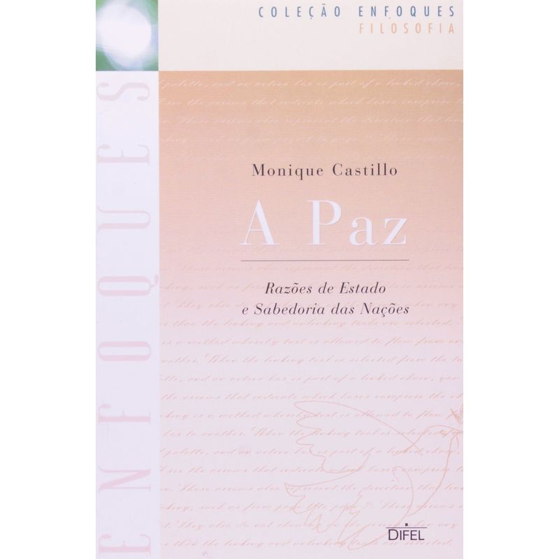 As relações humanas estão pautadas na guerra ou na paz? Para muitos filósofos, a guerra é inerente à natureza humana. Em A Paz – Razões de Estado e Sabedoria das Nações, a autora mostra que a idéia de paz não é somente uma construção oposta à tese do caráter inevitável da guerra, mas também constitui um ponto de vista sobre o mundo, cuja realidade política não se pode desprezar. Indispensável a pesquisadores e estudantes de filosofia e história, o livro reflete as concepções de historiadores e filósofos ao longo dos séculos, tais como Maquiavel, Hobbes, Kant, Webber, Rousseau, Maritain e Russell, entre outros. Dividido em três capítulos, explicita a idéia da paz perpétua ou paz universal; o pacifismo; e as incertezas que repousam sobre o risco de conflitos planetários que transformem a paz num estado de guerra. Segundo o pensador católico Jacques Maritain, as causas da guerra são atribuídas à anarquia que reina entre as nações. “A sociedade internacional permanecerá em situação de ‘desordem política’ enquanto os Estados não forem submetidos a uma autoridade capaz de impor regras à sua coexistência”, afirma ele. Já na visão do filósofo inglês Bertrand Russell, a paz significa “o futuro da modernidade científico-tecnológica”. A AUTORA Monique Castillo é professora da Universidade de Poitiers, na França. Suas obras tratam da filosofia crítica. Publicou, em especial, Kant et l’avenir de la culture (Kant e o futuro da cultura) e Kant, l’invention critique (Kant, a invenção crítica), além de trabalhos sobre ética, bioética e política.
