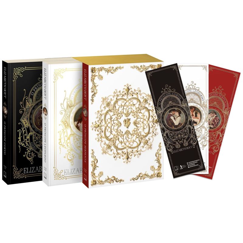 Esse box reúne os livros da Trilogia dos Príncipes – O Príncipe Corvo, O Príncipe Serpente e O Príncipe Leopardo –, além de lindos marcadores de página. Todos com histórias que vão da aventura ao romance, do humor ao erotismo, sempre com a caneta afiada de Elizabeth Hoyt.