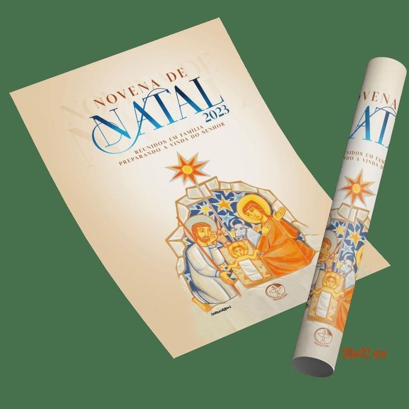 Este Cartaz, no tamanho A3 (29,7 por 42 cm), é ideal para fixação em murais, quadros, paredes e outros locais apropriados à divulgação da Novena de Natal. A Novena de Natal 2023 quer ser ocasião para despertar nas pessoas uma vida de oração por meioda cena do Presépio. Com o tema “Orar com o Presépio”, a Novena apresenta um caminho para o Natal que atende ao chamado do Papa Francisco, quando pediu a toda a Igreja que o ano de 2024 seja dedicado à oração, em vista da preparação para o grande Jubileu de 2025.