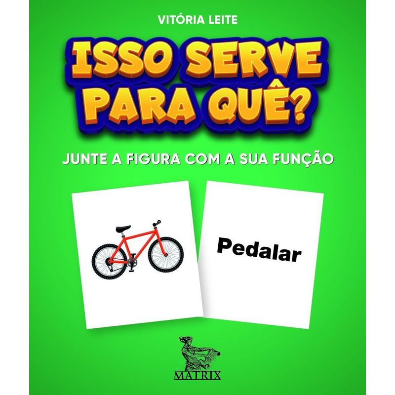 Isso serve para quê? Ora, para muitas coisas, mas você pode chamar de jogo da memória. São 50 cartas, divididas em 25 figuras de objetos e suas respectivas funções. Forme pares com “avião” e “voar” ou “livro” e “ler”, por exemplo. Você ainda pode inventar histórias a partir de cada figura, pensar em mais objetos para cada função ou o que mais a sua criatividade permitir. Além da memória, este livro-caixinha® também trabalha habilidades de associação de ideias, leitura e compreensão de palavras e imagens, raciocínio lógico e linguagem.