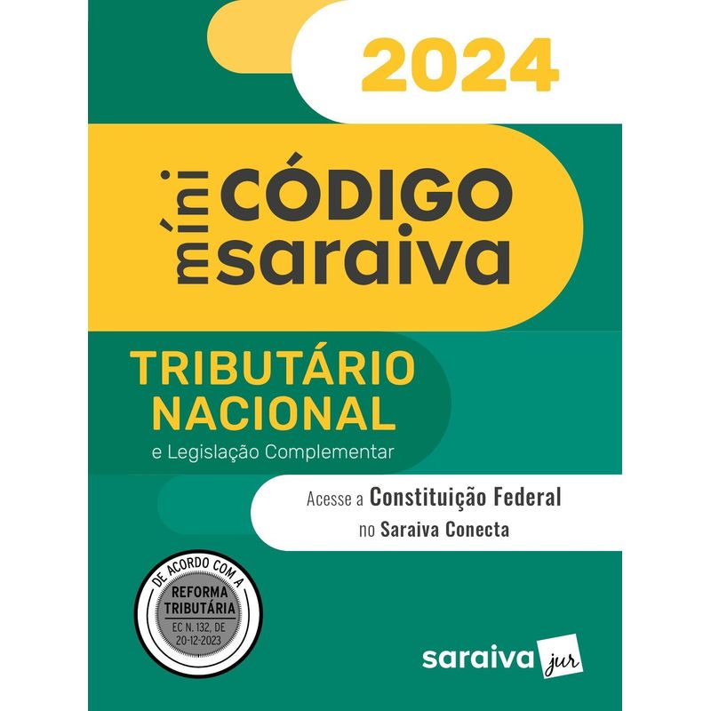 Datade Fechamento: 9-1-2024AEditora Saraiva Jur, líder no mercado de livros jurídicos e sempre atenta àsnecessidades dos profissionais e interessados neste meio, apresenta a novaedição da obra MíniCódigo TributárioNacional e Constituição Federal. Em formato compacto, a obra traz a principallegislação de Direito Tributário, com textos na íntegra da ConstituiçãoFederal, súmulas do STF, STJ, CARF e Vinculantes. INCLUI: ConstituiçãoFederal no Saraiva Conecta (Plataforma de conteúdosadicionais com acesso exclusivo, mediante link ou QR Code) Conteúdo fundamental para consulta rápida, simples e eficiente, com aqualidade Saraiva Educação. Destaquesdesta edição: · Constituição Federal (até EC 132, de 20-12-2023) · CódigoTributário Nacional – (LeiComplementar n. 201, de 24-10-2023) · LegislaçãoComplementarTributação em fundos de investimento (Lei n. 14.754,de 12-12-2023)Autorregularização incentivada de tributos (Lei n.14.740, de 29-11-2023)Voto de Qualidade no CARF (Lei n. 14.689, de20-9-2023)Arcabouço Fiscal (Lei Complementar n. 200, de30-8-2023)Estatuto Nacional de Simplificação de ObrigaçõesTributárias Acessórias (Lei Complementar n. 199, de 1.º-8-2023)IRPJ e CSLL ¿ Regras de preços de transferência (Lein. 14.596, de 14-6-2023) · SúmulasSúmula Vinculante 59 Súmula 658 do STJ