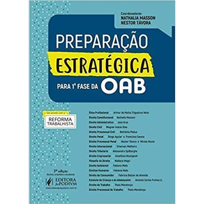 Este é o resultado de um grande esforço coletivo a fim de lhe oferecer o melhor livro voltado à sua preparação para a 1ª fase do Exame da OAB! Você não encontrará nesta obra um amontado de matérias aleatoriamente reunidas, sem qualquer lógica ou método, apenas agrupando o conteúdo das 17 disciplinas jurídicas exigidas no exame. Aqui temos um instrumento eficaz para sua aprovação, com objetividade, simplicidade e, principalmente, uma enorme estratégia de escolha e exposição de conteúdo. É um livro de dicas estratégicas de todas as disciplinas que constarão em sua prova de primeira fase do Exame da OAB. São dicas, pois apresentam a matéria em formato objetivo e sintético, o que, por óbvio, facilita sua leitura, compreensão e o aproveitamento do seu tempo, tão escasso e valioso. São estratégicas, pois resultam de um minucioso trabalho de análise das provas anteriores e do perfil da Fundação Getúlio Vargas, responsável pela elaboração da prova, bem como dos muitos anos de experiência dos professores autores.