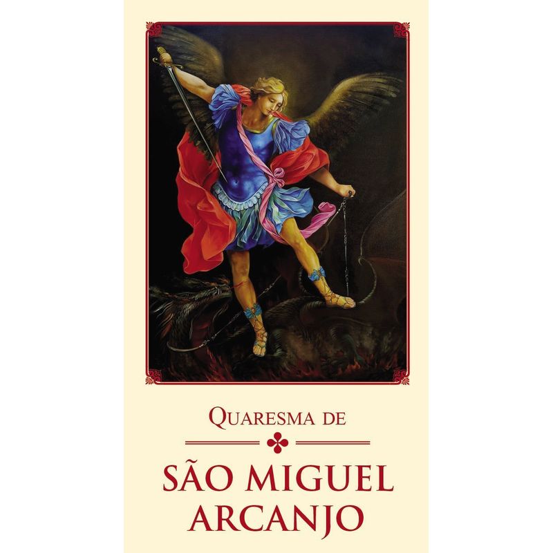 Este folheto traz a oração da Quaresma de São Miguel Arcanjo. Pode ser rezada a qualquer tempo, mas preferencialmente entre os dias 15 de agosto (Solenidade da Assunção da Virgem Maria) e 29 de setembro (quando celebramos o Arcanjo Miguel, juntamentecom outros dois arcanjos, Gabriel e Rafael), individualmente ou em comunidade. Disse o P2apa Pio X: “Deus na primeira luta venceu servindo-se de São Miguel. Devemos, portanto, acreditar firmemente que a luta atual terminará triunfante e também, como outrora, com o socorro e a ajuda deste Arcanjo bendito”.