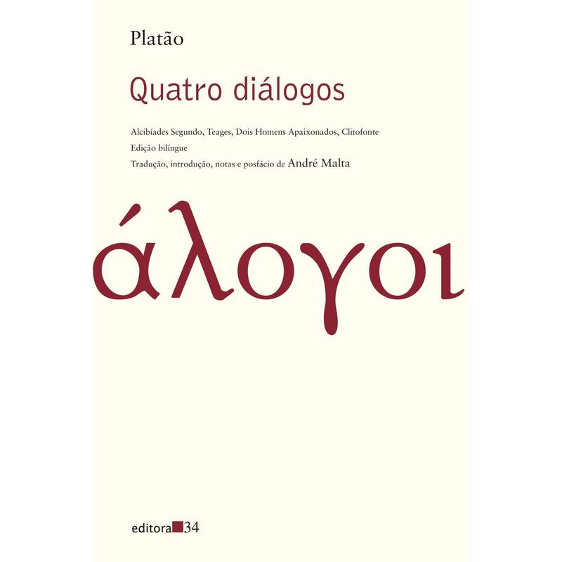 Este volume reúne quatro diálogos pouco conhecidos de Platão (427-347 a.C.): Alcibíades Segundo, Teages, Dois Homens Apaixonados e Clitofonte. Embora tradicionalmente tenham sido vistos como integrantes da vasta produção do filósofo grego, a partir dos séculos XIX e XX boa parte dos estudiosos passou a ignorá-los, considerando-os de autoria duvidosa ou mesmo inautênticos.
