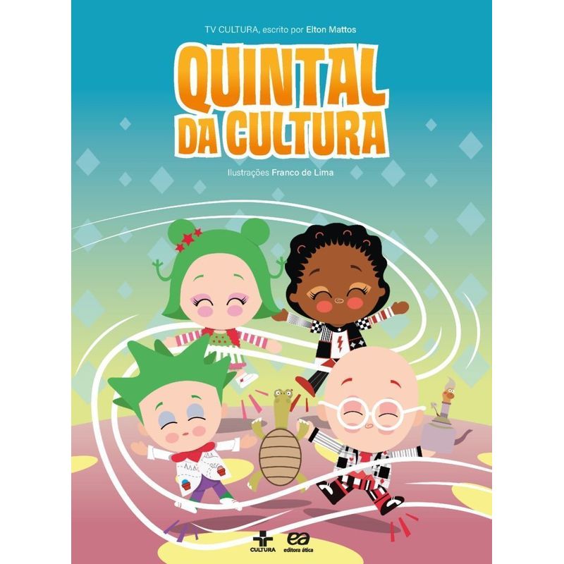 “Divertido e educativo, o programa Quintal da Cultura, exibido pela TV Cultura, acompanha quatro crianças – os irmãos Ludovico e Doroteia, o amigo Osório e sua tia Ofélia –, que brincam e se divertem aprendendo coisas novas ao lado de um jabuti chamado Quelônio e da minhoca Minhoquias. Em parceria com a TV Cultura, a SOMOS Educação lança o livro Quintal da Cultura, pelo selo Ática, que narra algumas aventuras dos personagens da turma. Quando o vento da aventura sopra perto de Doroteia, Ofélia, Osório e Ludovico, é sinal de que algo mágico vai acontecer. Já pensou poder viajar para outro lugar ou para um passado bem distante, como a Floresta Amazônica, no meio de uma aldeia indígena sendo atacada por espanhóis, em pleno século XVI? E conhecer Zumbi e Dandara no Quilombo dos Palmares? Quem sabe entregar uma valiosa encomenda para um imperador inca? Você vai se divertir e se emocionar com as aventuras do Quintal da Cultura e aprender com as lições de Quelônio na Seção Oxente. O que está esperando? Abra o livro e deixe o vento da aventura te levar! Boa viagem!”