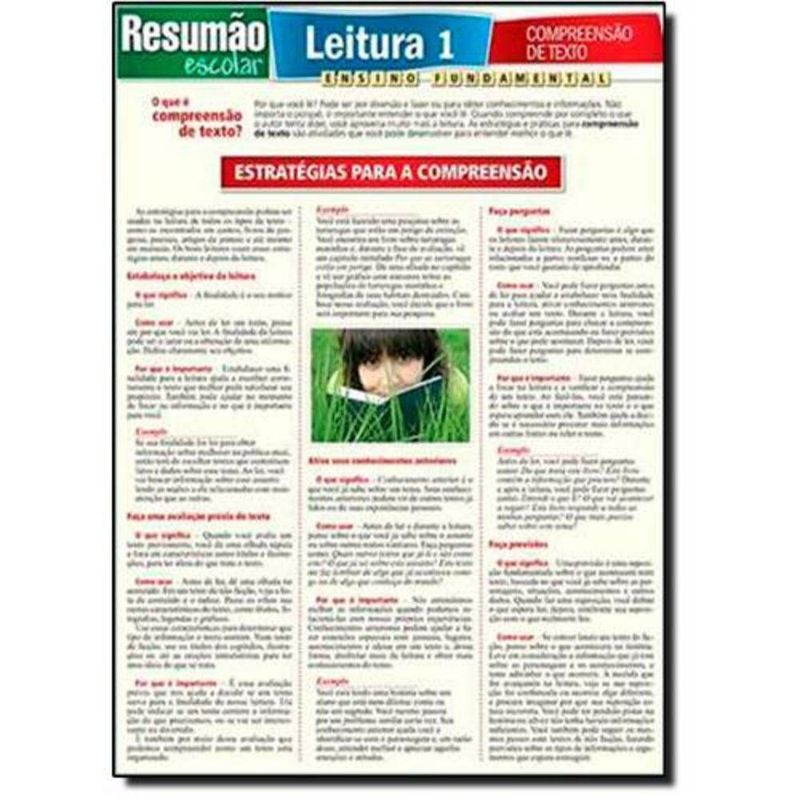 Compreender e interpretar um texto estão entre as tarefas mais pedidas pelas escolas e provas no ensino brasileiro. Este guia explica, de forma bastante didática, algumas estratégias e práticas necessárias para a melhor compreensão de um texto. Entender o objetivo da leitura, lembrar de conhecimentos anteriores, fazer perguntas, reconhecer o ponto de vista e o objetivo do autor, distinguir entre fato e opinião, comparar, identificar a ideia principal e resumir são alguns dos pontos abordados no Resumão. No final, um quadro com dicas rápidas para aproveitar melhor tudo o que a leitura oferece.