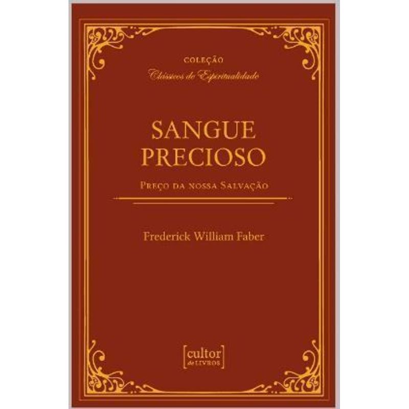 É do Sangue Precioso que os homens tiram mártires, vocações, caridades heroicas e todas as magníficas graças de grande santidade. Nesta obra, Padre Faber explora todas as implicações do Sangue Precioso de Jesus em nossas vidas e a devoção que devemoster a ele, pois é somente dele que vem a nossa salvação. “Tentei contar-lhes tudo o que sei sobre o Sangue Precioso, tudo o que muitos anos de estudo árduo e muito pensamento me permitiram aprender; e tentei contar-lhes isso da maneira mais fácil esimples que pude.”