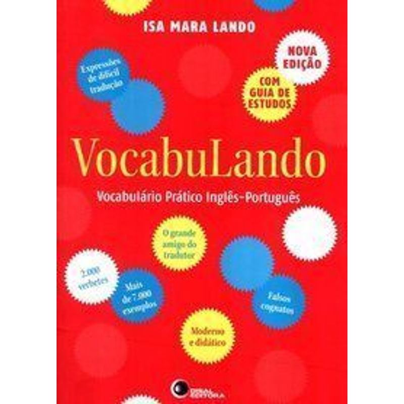 VocabuLando é um dicionário moderno e comunicativo, focado nas dificuldades do inglês. Tem 560 páginas, 2.000 verbetes e 7.000 frases-exemplo traduzidas na íntegra. Com riqueza de opções em português, alertas e explicações, o grande amigo do tradutor está em catálogo há mais de 15 anos, em edições sempre melhoradas. Resolvendo dúvidas e orientando para uma tradução bem feita, é amplamente adotado pelos tradutores e nos melhores cursos de inglês.